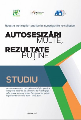Asociația Presei Independente (API) și portalul MoldovaCurata.md vă invită la prezentarea Studiului “Reacția instituțiilor publice la investigațiile jurnalistice: autosesizări multe, rezultate puține”. Evenimentul va avea loc luni, 22 ianuarie 2018, ora 14.00, în sala de conferințe a Hotelului „Jolly Alon” (mun. Chișinău, str. Maria Cebotari 37).