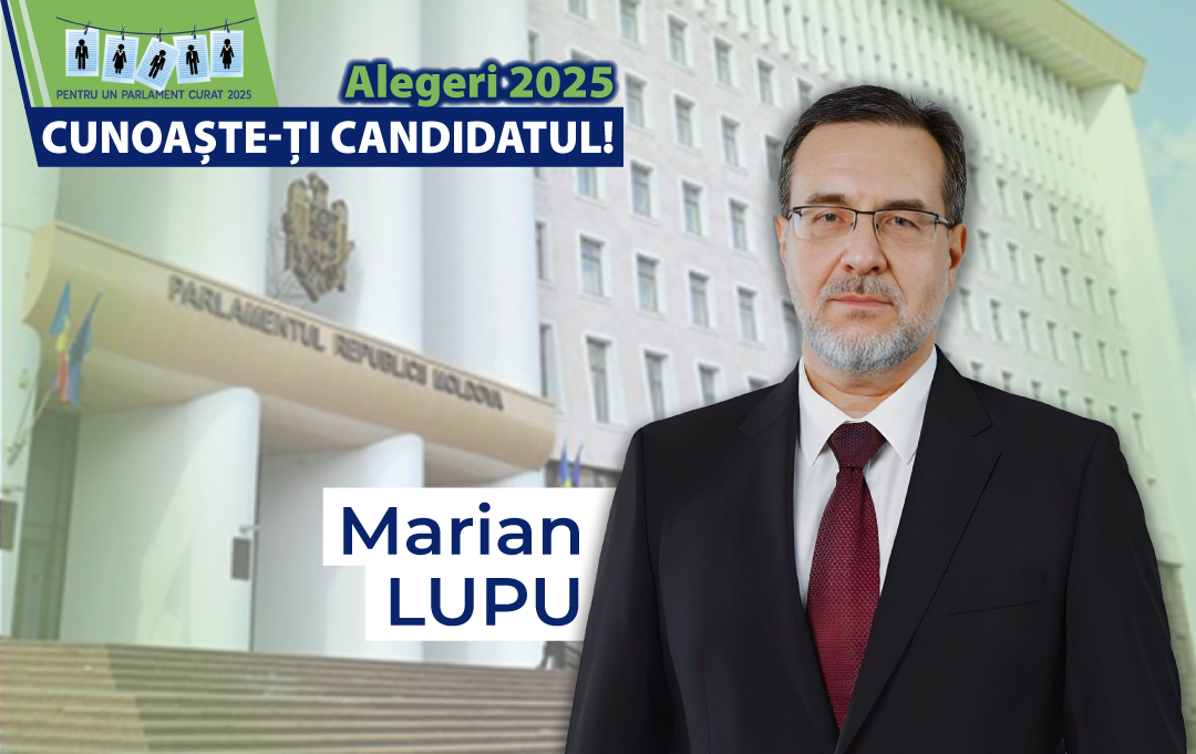 Marian Lupu (59 de ani) este președintele Partidului Politic Mișcarea Respect Moldova și numărul unu pe lista de candidați a formațiunii la alegerile parlamentare din 28 septembrie. Lupu se află în politică de mai bine de 20 de ani, timp în care a deținut mai multe funcții înalte în stat. Și-a început activitatea în funcții publice la Ministerul Economiei, iar în 2001 a devenit viceministru al Economiei, într-un guvern al comuniștilor, cu Vasile Tarlev prim-ministru. În august 2003 a fost propulsat în funcția de ministru, la același minister.