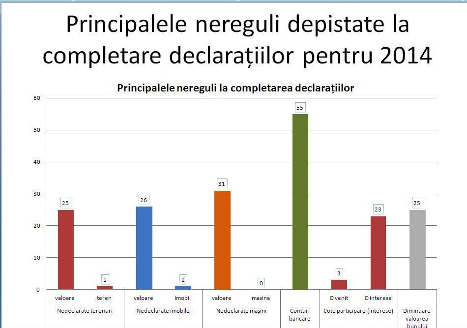 O altă abatere descoperită de ADEPT este că în 30 la sută din declaraţiile de avere pentru anul 2014 care au fost analizate, nu au fost indicate conturile bancare deţinute de demnitari.