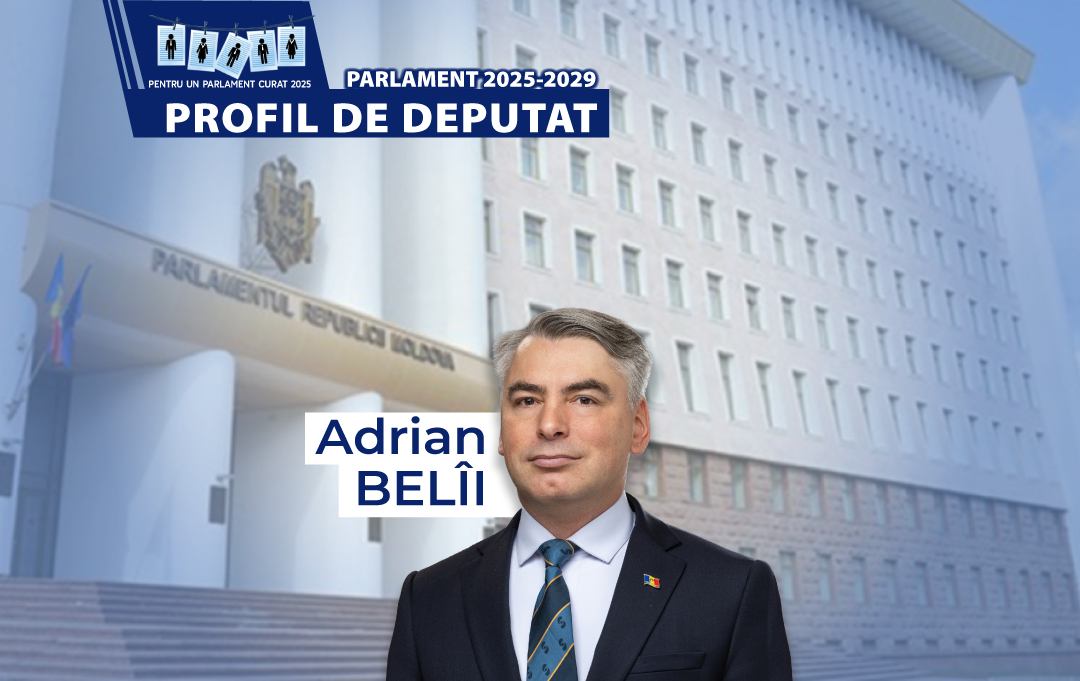 Adrian Belîi (50 de ani) a fost ales deputat pe lista Partidului Acțiune și Solidaritate (PAS), formațiune care a obținut majoritatea (55 de mandate) în Legislativ, ca urmare a alegerilor din 28 septembrie 2025. Este președintele Comisiei parlamentare pentru protecție socială, sănătate și familie, funcție pe care a deținut-o și în mandatul precedent.