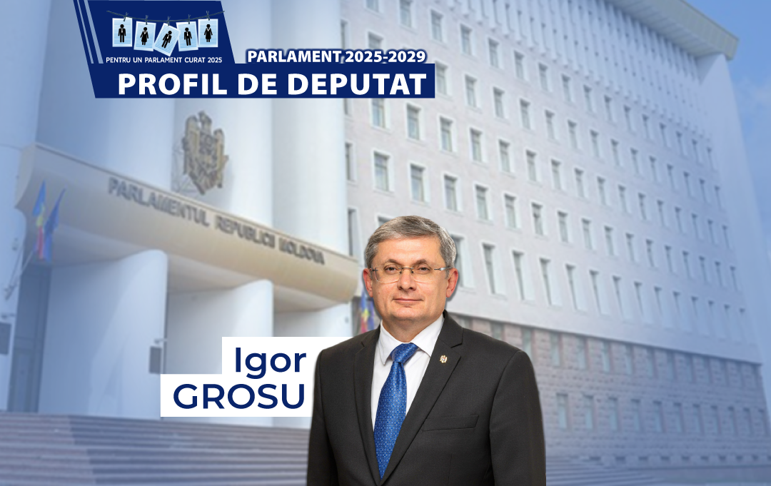 Igor Grosu (53 de ani) este președintele Parlamentului și membru al fracțiunii parlamentare a Partidului Acțiune și Solidaritate (PAS), fiind la al treilea mandat de deputat. Pentru prima dată, a acces în Parlament în martie 2019, pe lista aceluiași partid. După scrutinul din iulie 2021 a fost ales președinte al Parlamentului, iar la 22 octombrie 2025 a fost ales pentru a doua oară în această funcție. Este liderul Partidului Acțiune și Solidaritate (PAS) începând cu luna mai 2022.