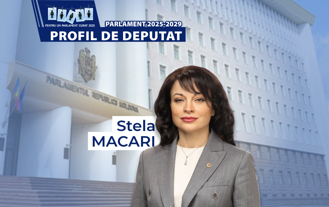 Stela Macari (49 de ani) este deputată aleasă pe listele Partidului Acțiune și Solidaritate (PAS). Născută în s. Mândrești, raionul Telenești, este licențiată în inginerie la Universitatea Tehnică a Moldovei (UTM), specialitatea inginer constructor-modelier. Între 1998-1999, imediat după finalizarea studiilor de licență, Stela Macari a devenit lector stagiar la UTM, la Facultatea Industrie Ușoară.