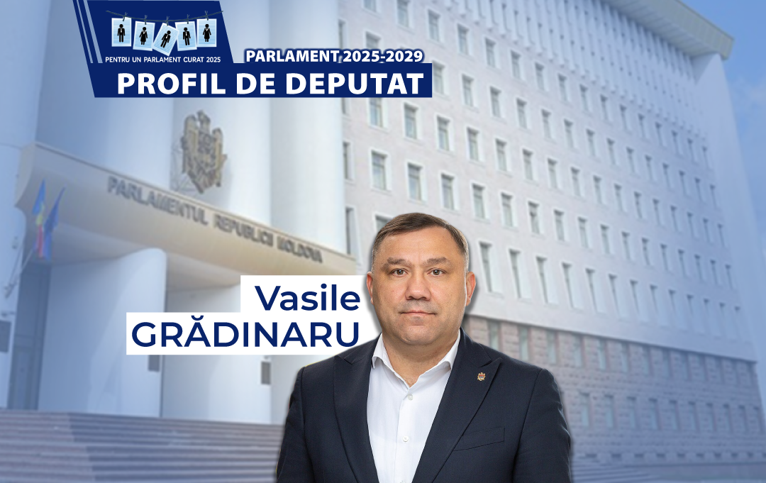 Vasile Grădinaru (43 de ani) a acces în Parlament pe lista Partidului Acțiune și Solidaritate (PAS), fiind la al doilea mandat consecutiv. Potrivit CV-ului său, deputatul a studiat la Colegiul de Ecologie din Chișinău, apoi a absolvit Facultatea de Drept a Universității de Stat din Moldova, specializându-se în drept civil. Înainte de a-și începe cariera politică, Vasile Grădinaru a activat în sectorul privat. Din 2008, a ocupat funcția de administrator al companiei Service Senza Limiti SRL, iar în 2013 și-a lansat propria afacere, Move Flex SRL. Ambele companii au fost lichidate în 2019 și erau specializate în construcții civile.